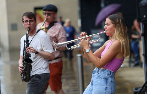 A multitude of locations around the historic city provided attractive backgrounds to the dulcet tones of trombones, trumpets and french horns often accompanied by a drum beat, the claps and cheers of the gathered crowd. A more contemporary vibe from the traditional brass band even encouraged a couple to swing dance between the raindrops.
