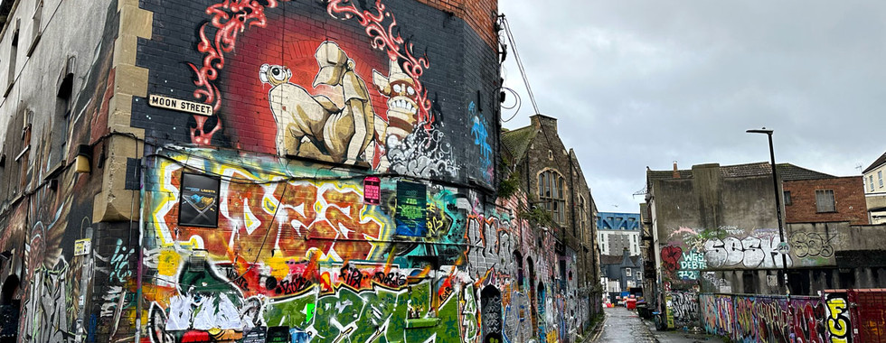 The following day we took a stroll into Stokes Croft, which proved a complete contrast. A former industrial area, it has since developed into a colourful canvas displaying many examples of street art. The majority of the businesses in the area are independent, with creativity and counter culture appearing to be encouraged. Among the colourful compositions is Mild Mild West designed by the elusive Banksy, who originates from Bristol.